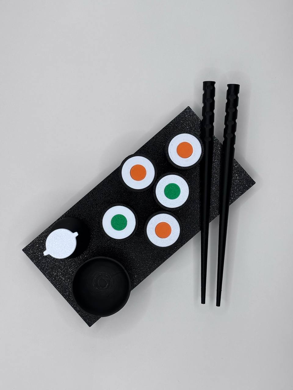 • Додаткові елементи: тарілочка, соєвий соус та розбирач для суші.